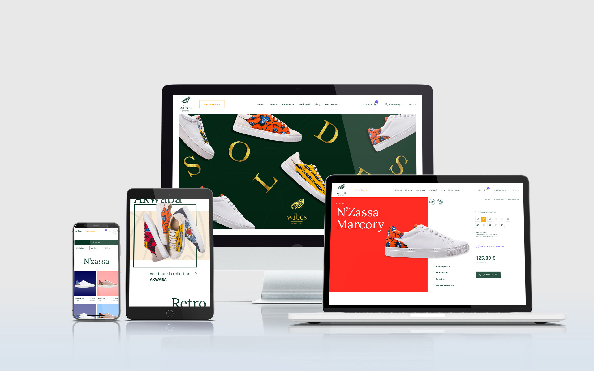 Création du nouveau e-commerce de Wibes. Création et vente en ligne de baskets haut de gamme et éthiques.